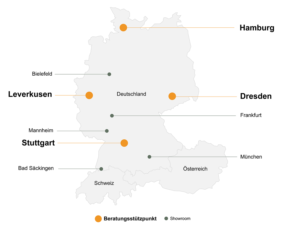 现场体验放松——欢迎来访,享受免费、无义务的试驾!在我们的咨询中心,您可以近距离体验各种不同型号的按摩椅,并获得我们专业顾问的个人建议。请注意:这些地点需要提前预订。我们的位置概览向您展示了当地有哪些型号可供选择。您还可以在那里轻松安排您的个人咨询预约。