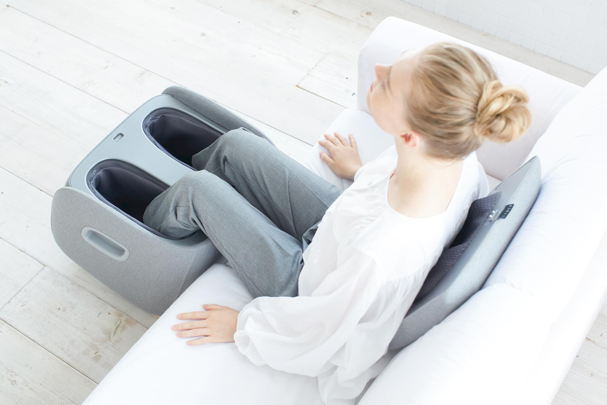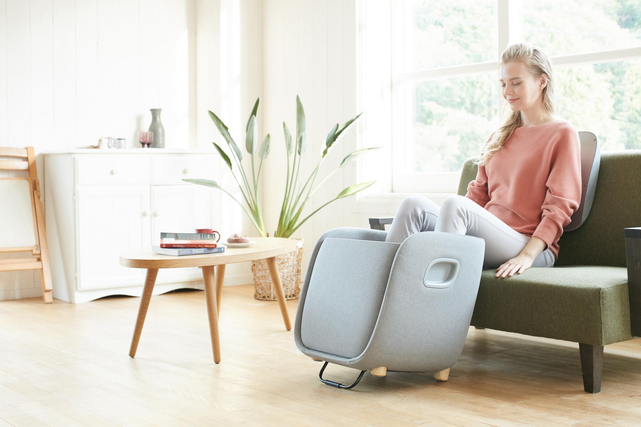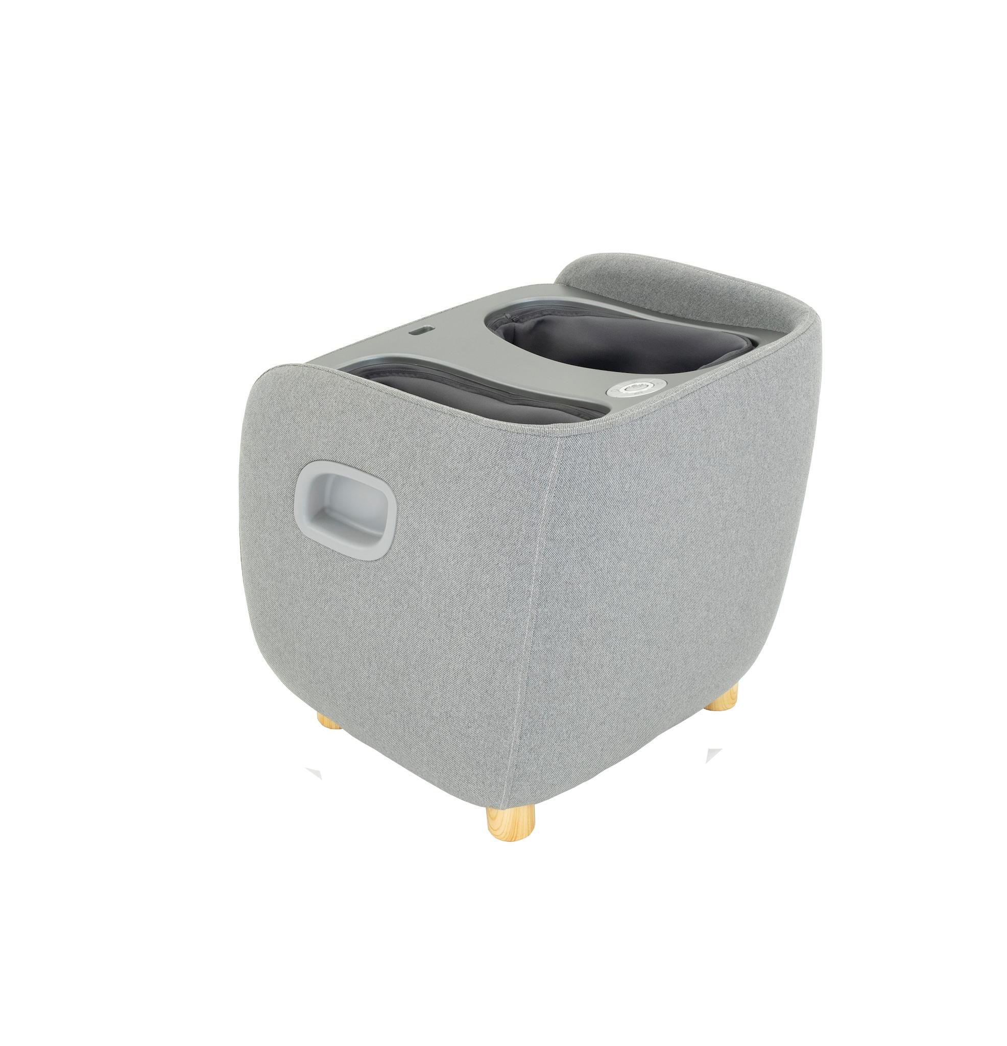 SYNCA的 "Ottoman "REi在最小的空间里提供了惊人的功能:其引人注目的紧凑尺寸和高质量的浅灰色织物封面,很容易让人误以为它是一件现代的谨慎的座椅家具。然而,只要你揭开 "卧榻 "的简单盖子,一个高质量的足部和小腿按摩装置就会在其有品位的设计后面打开。同样,不言自明的操作菜单也被揭示出来,通过这个菜单,只需按下一个按钮就可以选择 "奥特曼 "的豪华功能--日本指压和刮痧技术的结合将以无与伦比的按摩质量来说服你。