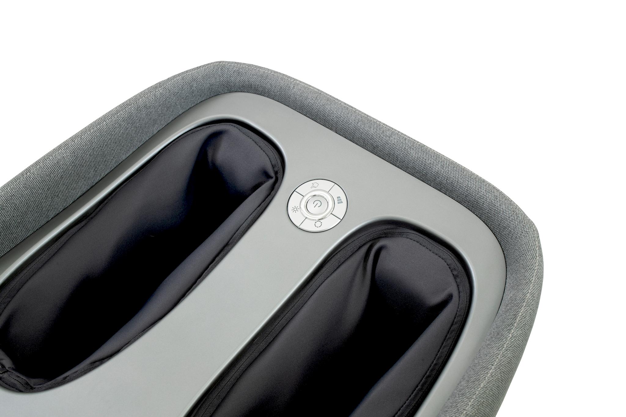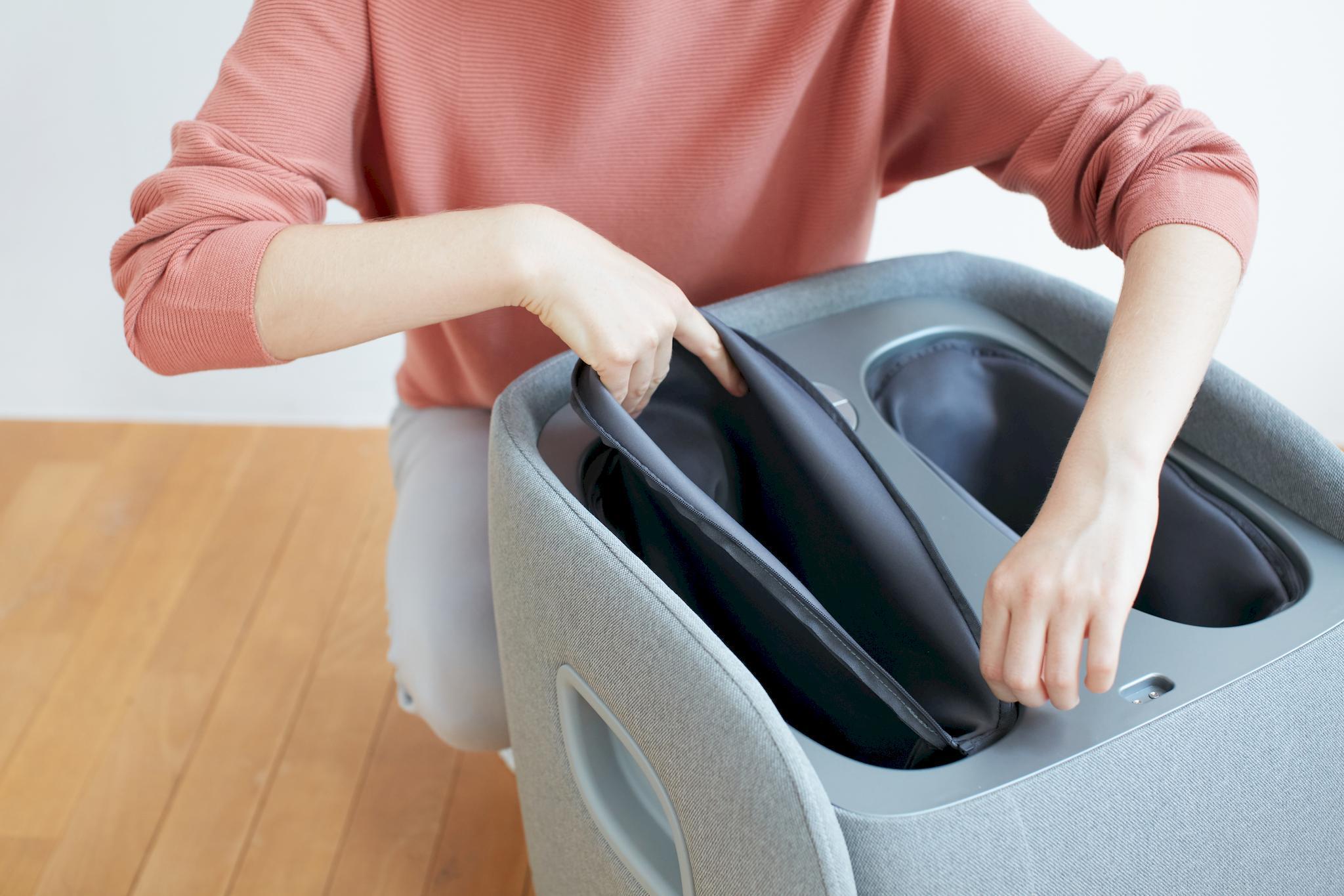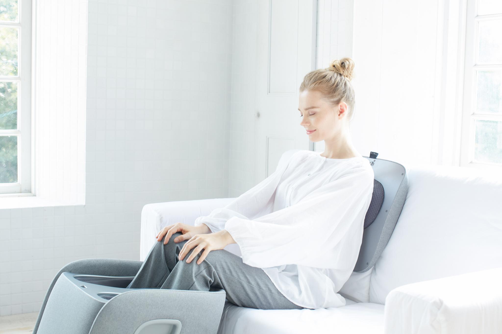 SYNCA的 "Ottoman "REi在最小的空间里提供了惊人的功能:其引人注目的紧凑尺寸和高质量的浅灰色织物封面,很容易让人误以为它是一件现代的谨慎的座椅家具。然而,只要你揭开 "卧榻 "的简单盖子,一个高质量的足部和小腿按摩装置就会在其有品位的设计后面打开。同样,不言自明的操作菜单也被揭示出来,通过这个菜单,只需按下一个按钮就可以选择 "奥特曼 "的豪华功能--日本指压和刮痧技术的结合将以无与伦比的按摩质量来说服你。